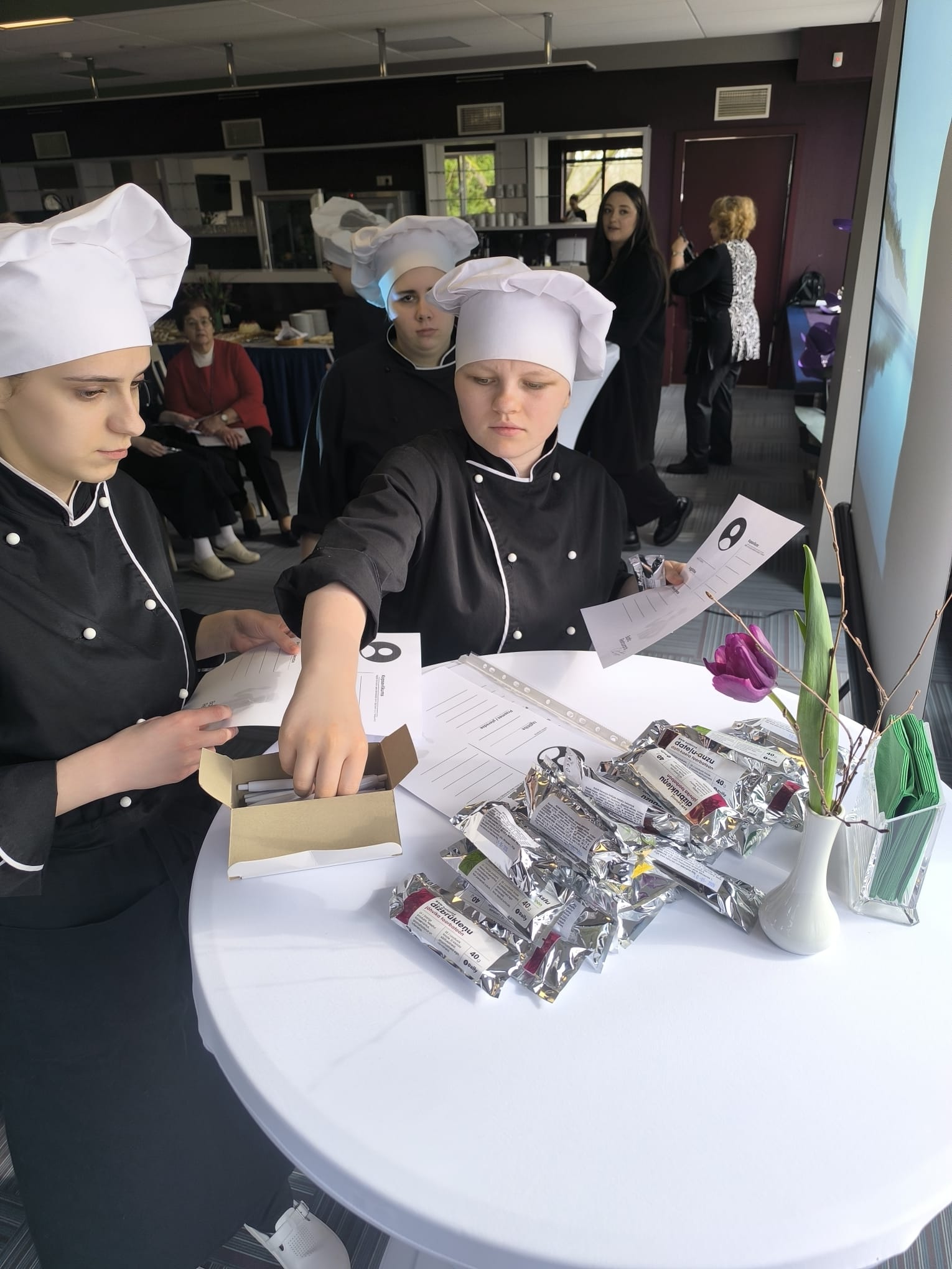 3. un 4. kursa pavāru specialitātes audzēkņi skolotāju Vitas Auderes un Ineses Veidemanes vadībā pagatavoja gan sāļas, gan saldas uzkodas.
