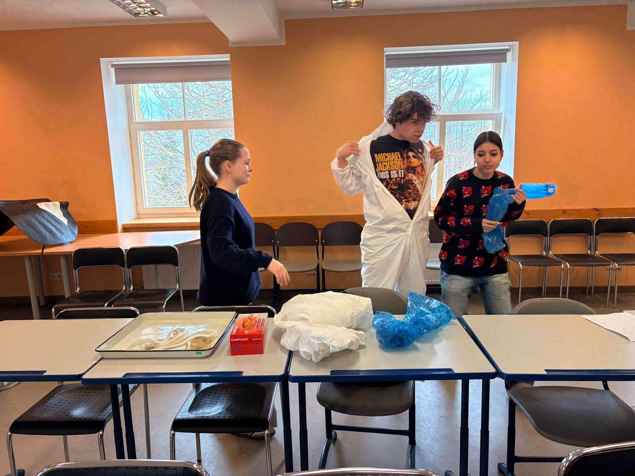 Pēc intensīvās dienas Bebrenes audzēkņi iesaistījās Vetu dienu konkursā, kuru organizēja Veterinārmedicīnas nodaļas pedagogi. Ekskursijā pa mācību kabinetiem un klīniku ciemiņus pavadīja 1.b kursa audzēknes Marta, Elīna un Simona.